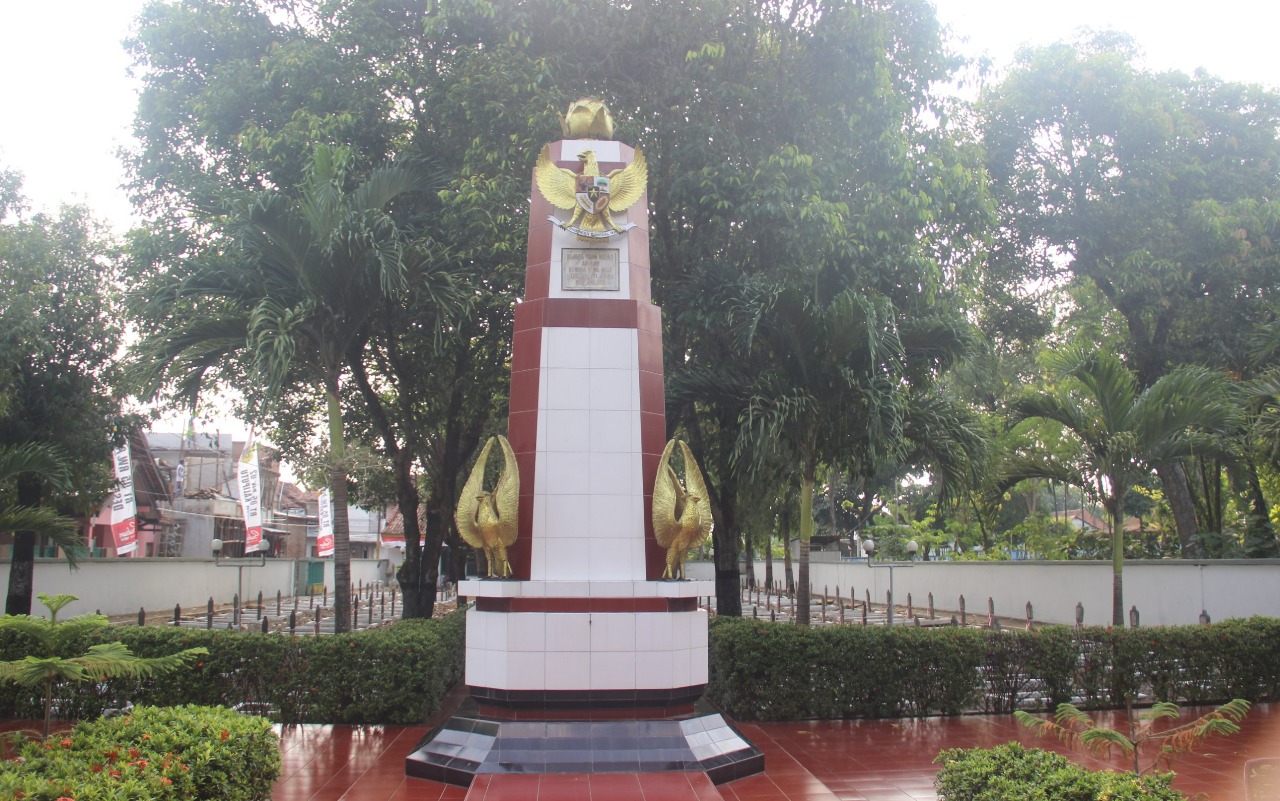 Masuk ke dalam terdapat sebuah tugu setinggi sekitar empat meteran. Di bagian atas terpampang Lambang Negara Burung Garuda. Dan di bagian bawah terlihat replika dua burung garuda warna keemasan denga dua sayap yang tengah mengepak.