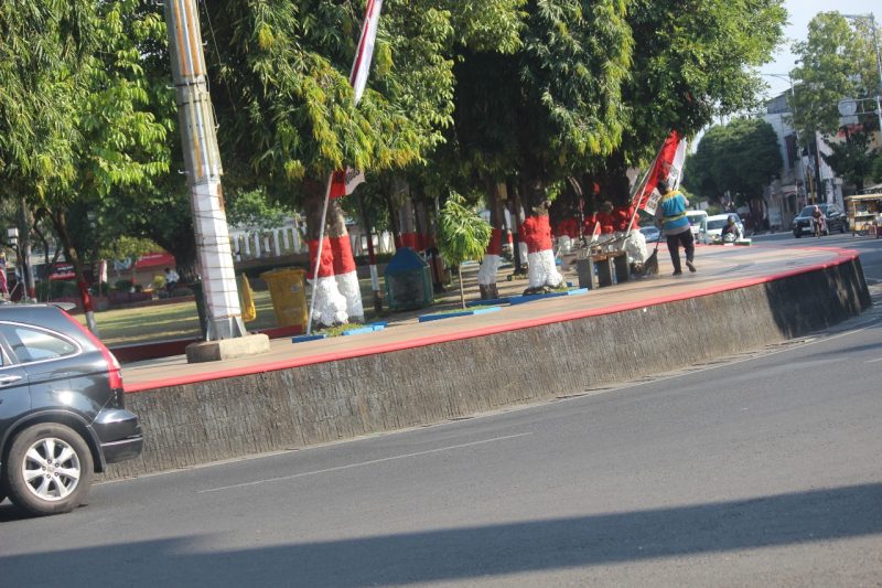 Seluruh Pohon di Simpang Tujuh Dicat Merah Putih
